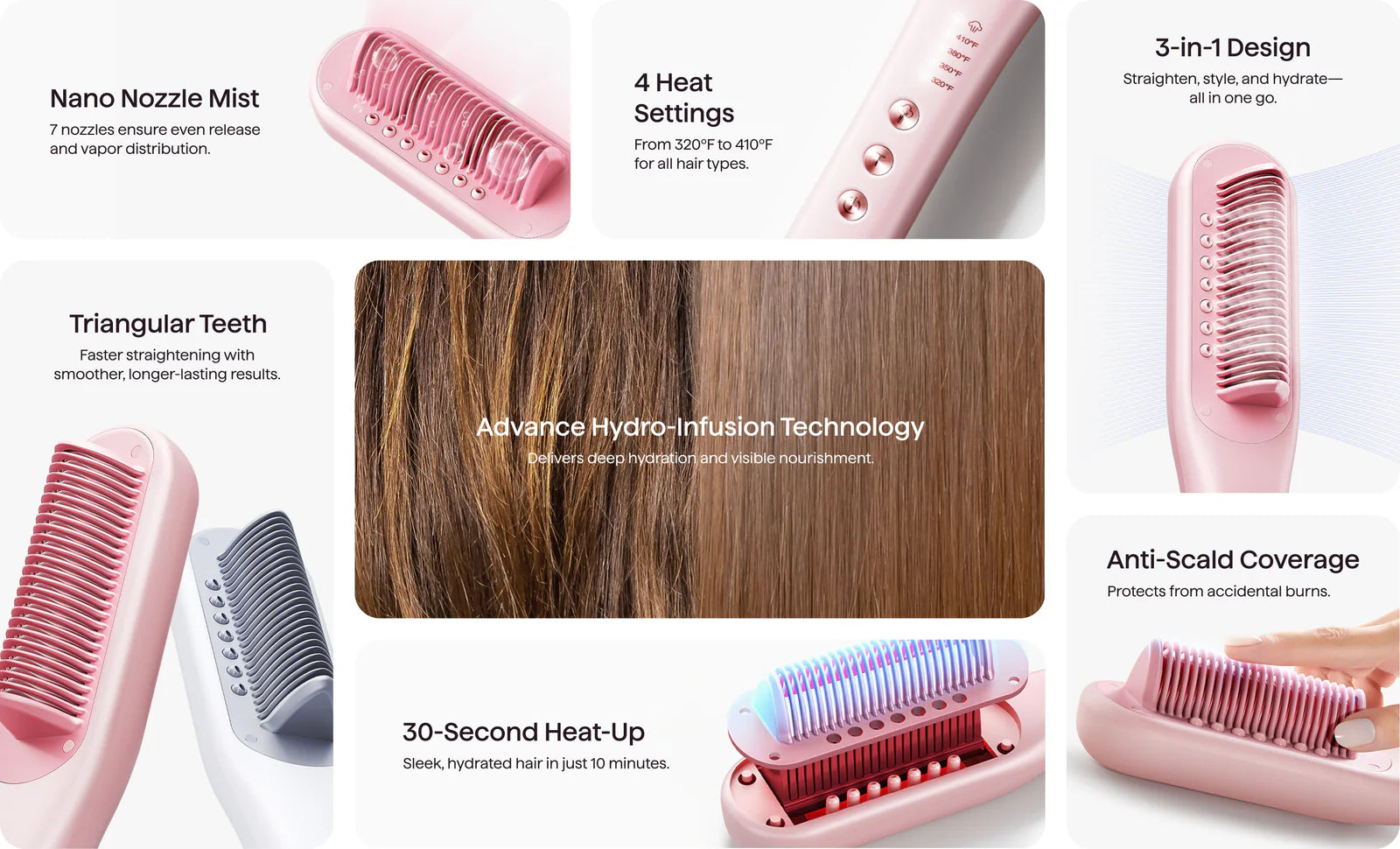Straightens, Styles & Hydrates—all in one effortless pass.